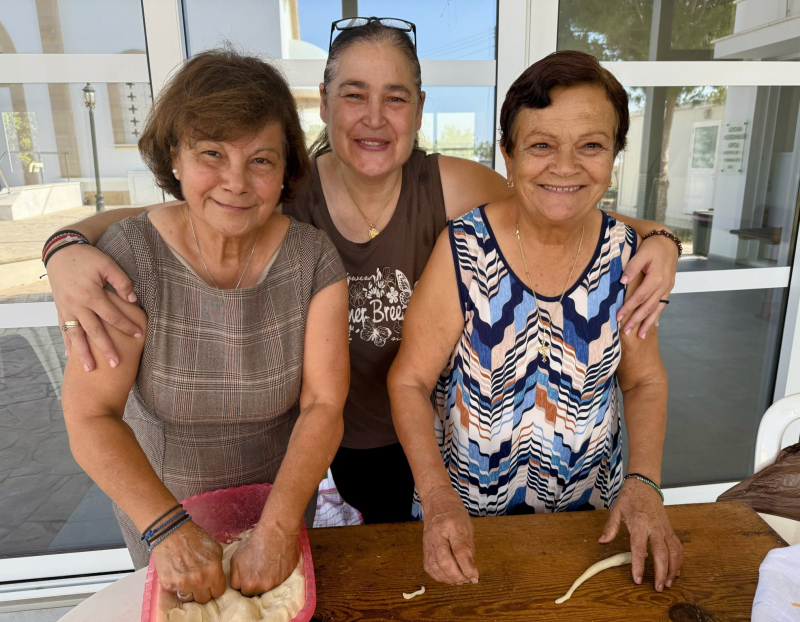 6. Φυσικά, ζυμαρένιες κατασκευές είχαμε και για ένα παραδοσιακό γλυκό έδεσμα τα τζιερτζελούθκια με υπεύθυνες την κ. Παναγιώτα Χατζησάββα, τη Δήμαρχο, την Ευγενία Πρωτοπαπά και τις κ. Σωτηρούλα και Μάρθα Χατζηγιάννη καθώς και την Ελ. Παπαμιχαήλ. Αφού κατασκεύασαν τα κουλουράκια, τα έψησαν σε νερό και χαρουπόμελο και τα κέρασαν σε μικρούς και μεγάλους.