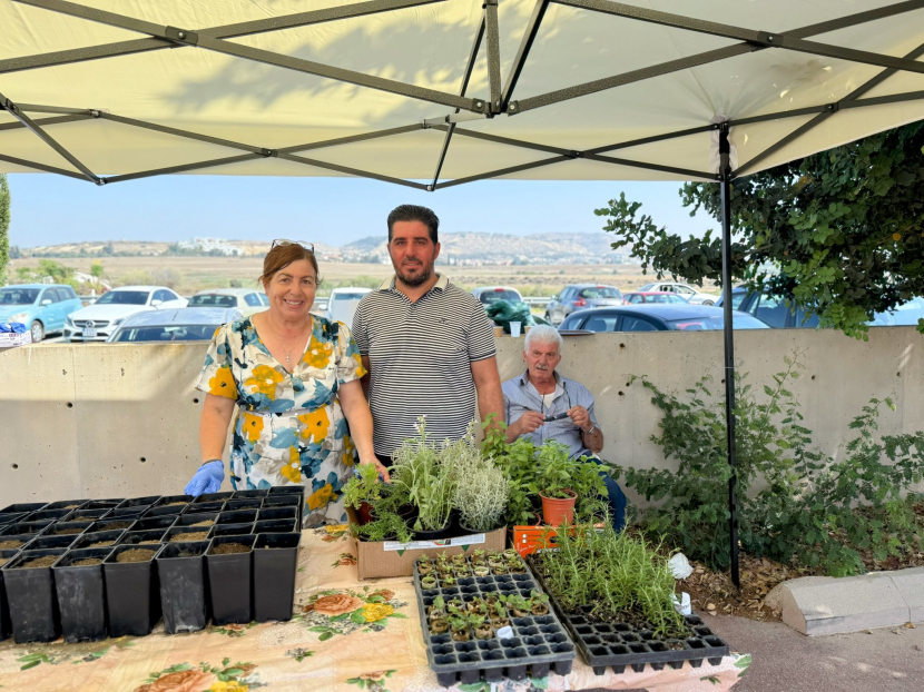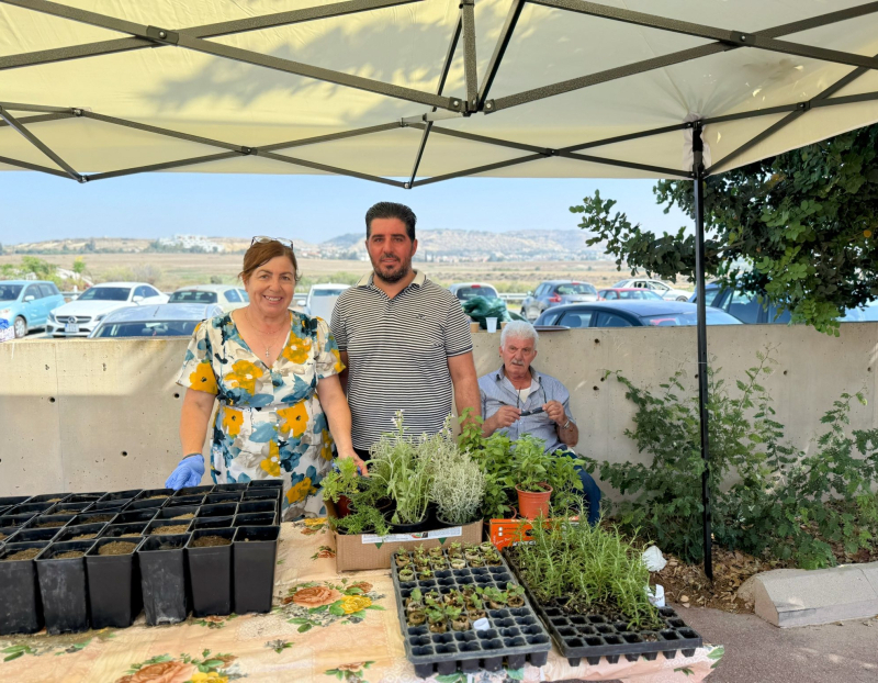 8. Μια ολόκληρη οικογένεια Σάββας, Κυριάκος, Αναστασία και η Δ.Σ. Χρύσω Καρτανά, βοήθησαν τα παιδιά να φυτέψουν ένα παραδοσιακό, Ακανθιώτικο δικό τους φυτό με την υπόσχεση να το φροντίζουν μέχρι τον γυρισμό.
