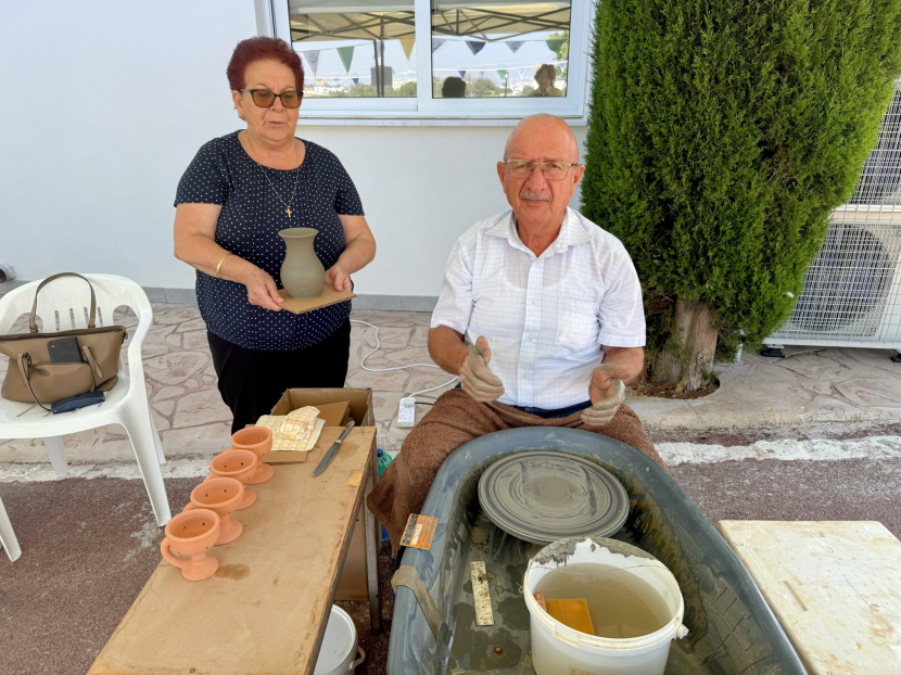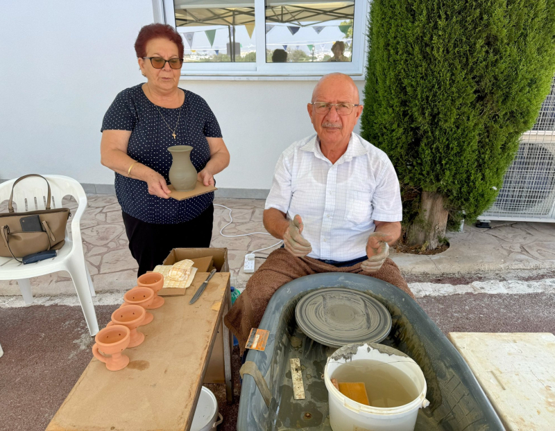 2. Τα παιδιά παρακολούθησαν τον αγγειοπλάστη Κοινοτάρχη Ακανθούς κ. Αντρέα Σκουτάρη, που υπερέβαλε εαυτόν μαζί με τη σύζυγό του Χρυστάλλα στο να ευχαριστήσουν τα παιδιά, φτιάχνοντας όμορφα αγγεία στον τροχό, τα οποία χάριζε σ’ αυτά.
