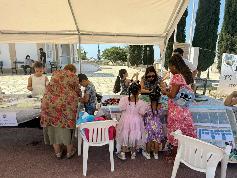 9. Οι κατασκευές πάντα τραβούν την προσχή των παιδιών. Οι δασκάλες Αναστασία και Δώρα Χατζημιχαήλ βοηθούσαν τα παιδιά στο να φτιάξουν καλαίσθητα βραχιολάκια κι άλλα διακοσμητικά που θα ήταν το ενθύμιο της παρουσίας τους εκεί. Παράλληλα η άλλη δασκάλα κ. Χρυστάλλα Αντρέου βοήθησε τα παιδιά να φτιάξουν μια τρισδιάστατη κατασκευή με θέμα «πάω με το ποδήλατό μου στην Ακανθού». Μια συμβολική εικόνα για τον μόνιμο και καθολικό πόθο όλων.