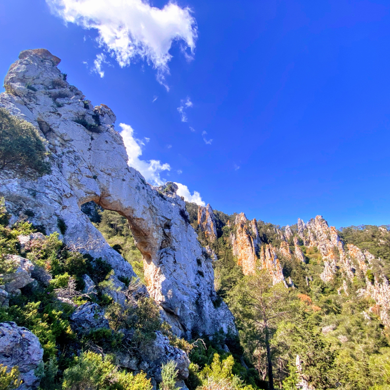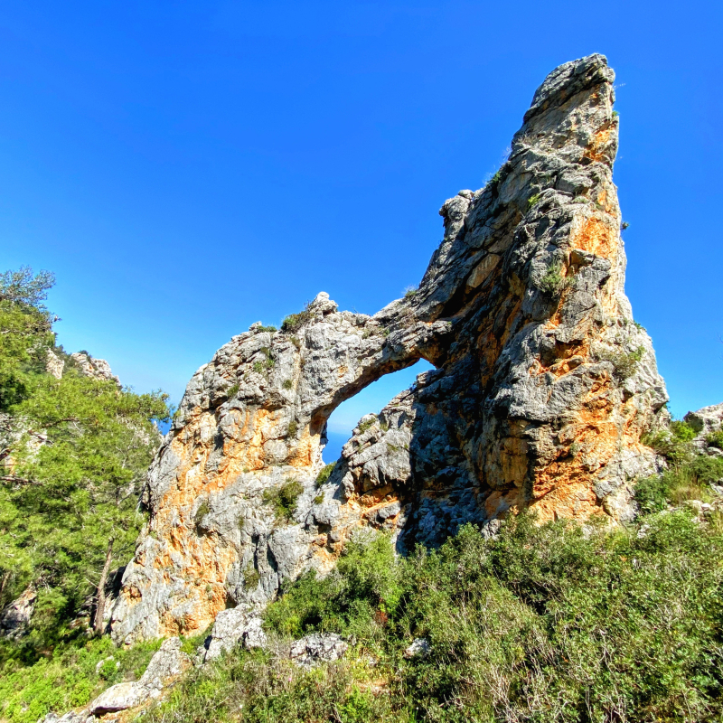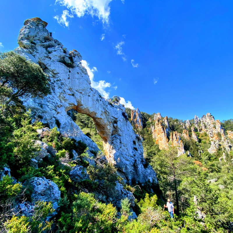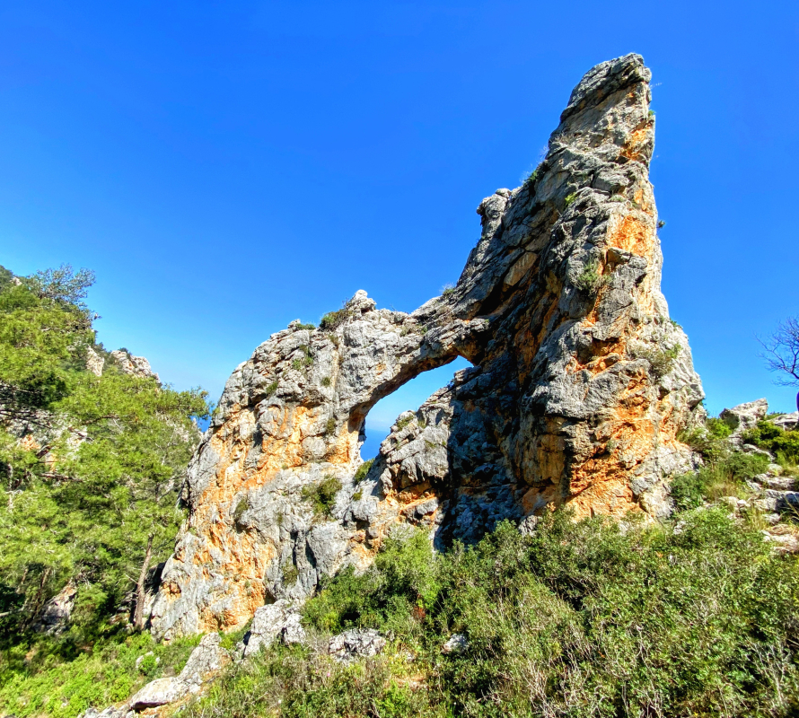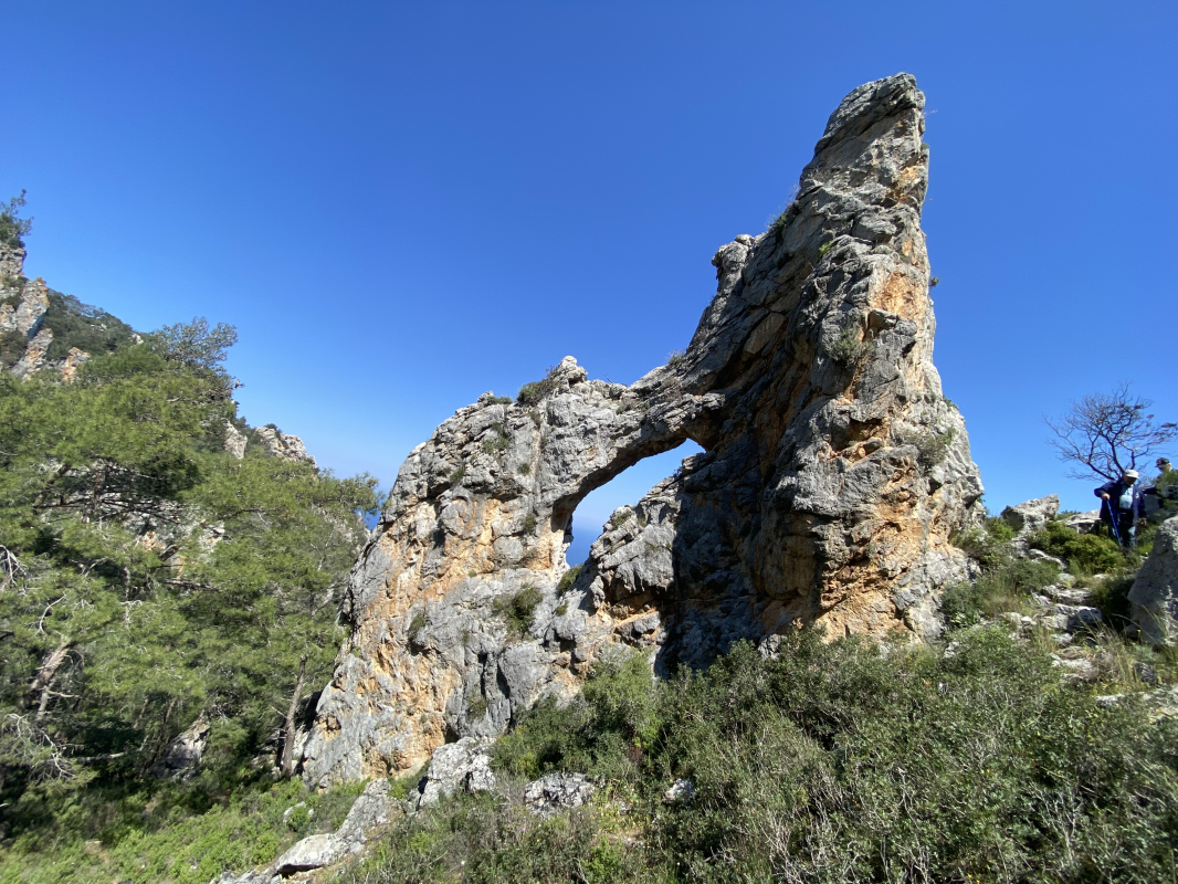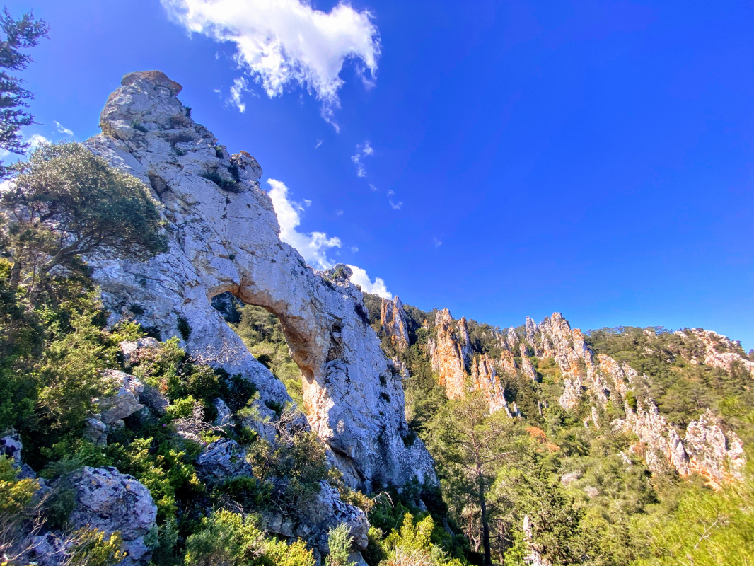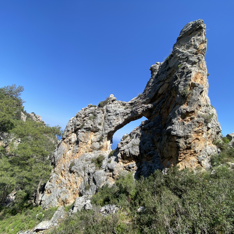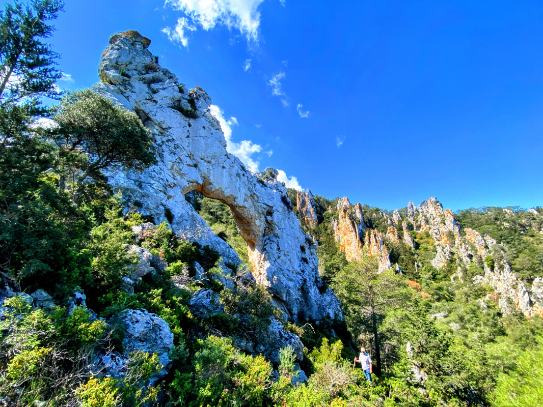 Το ποικίλο πράσινο συντροφεύει τις ασβεστόπετρες της κορυφής. Έχει κι αυτό διπλή θέα βορρά και νότου. Έχει μικρότερη τρύπα κι είναι εξίσου επιβλητικό.